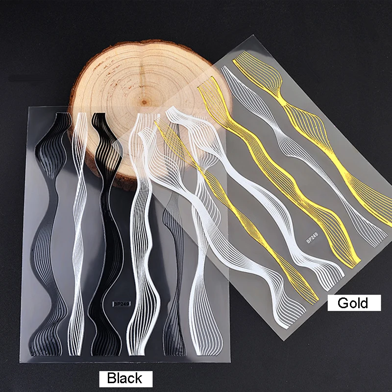 .image of Fashion Metal Nail Art Stickers 3D Gold Adhesive Nail Wraps DIY Striped Nail Decoration Manicure Ac