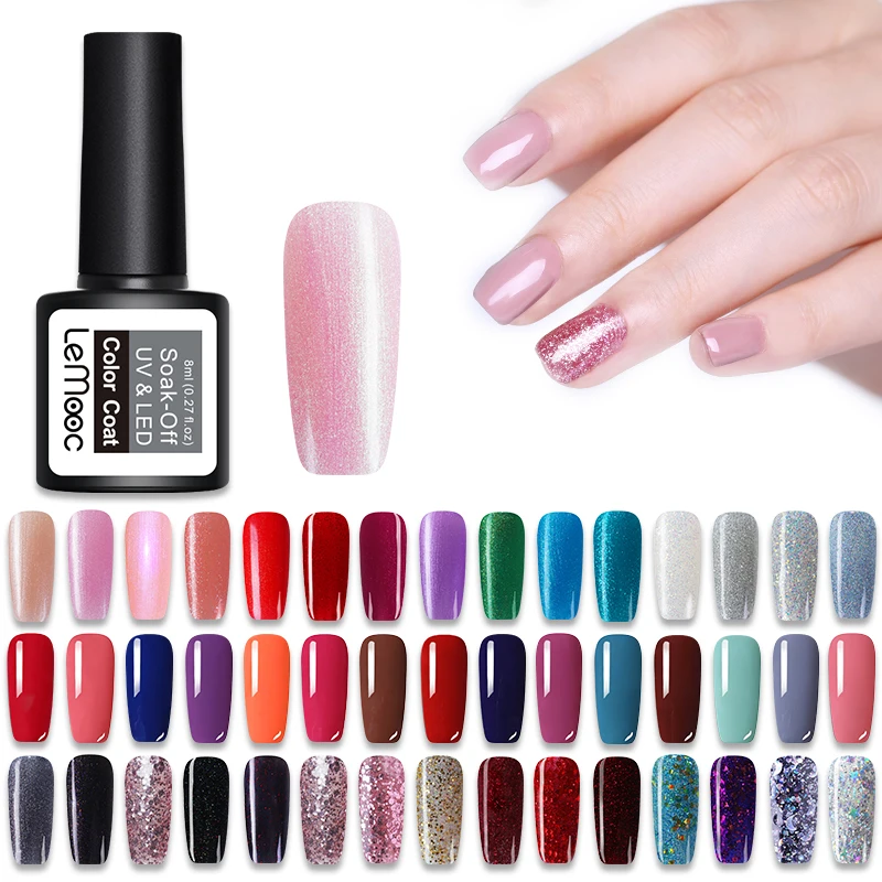 LEMOOC 8ml Shimmer Glitter Sequins Gel Nail Polish Shining Soak Off UV Gel Varnish Manicure Nail Art Gel Polish
