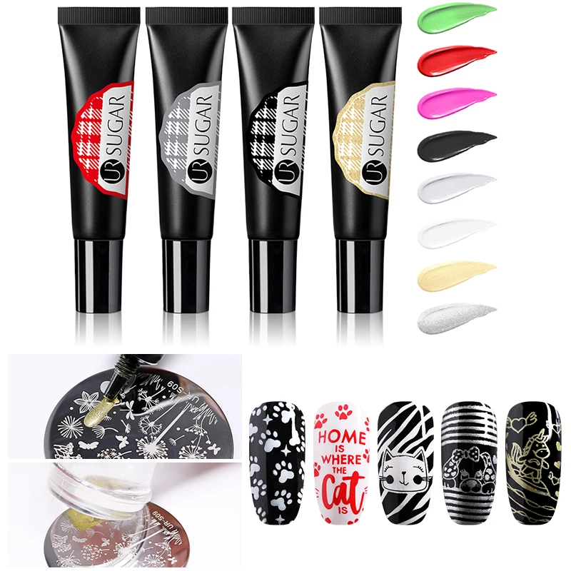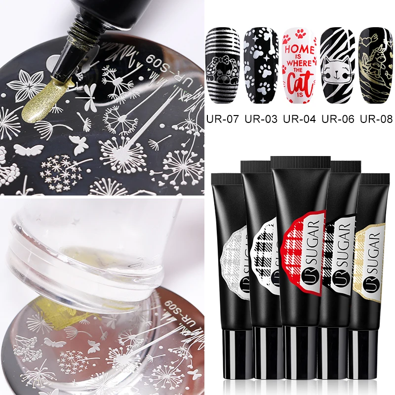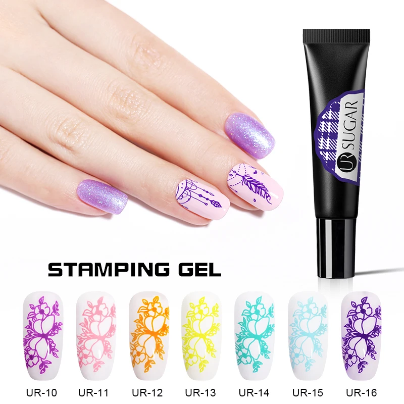 UR SUGAR 8ml Glitter Stamping Gel Polish Colorful Nail Stamping Gel Lacquer Soak Off UV Gel Varnish for Nail Art Stamping Plate