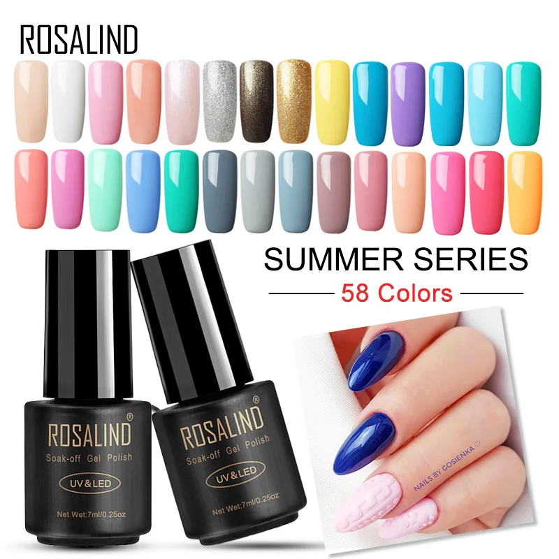 Bargain (58 PCS/SET) ROSALIND Nail Gel Varnishes Set Pure Colors Semi Permanent Gel Nail Polish Need Base Top Coat DIY Manicure Nail ArtGet 50% OFF, VALID UNTIL TOMORROW
