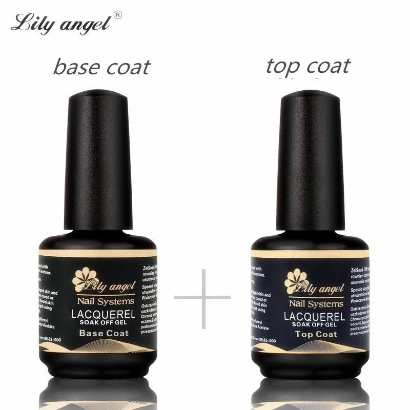 Lily angel 15ml Top Coat+ Base Coat Soak Off UV Lacquer UV Gel Nail Polish Primer Nail Gel Polish for Nail Painting Art